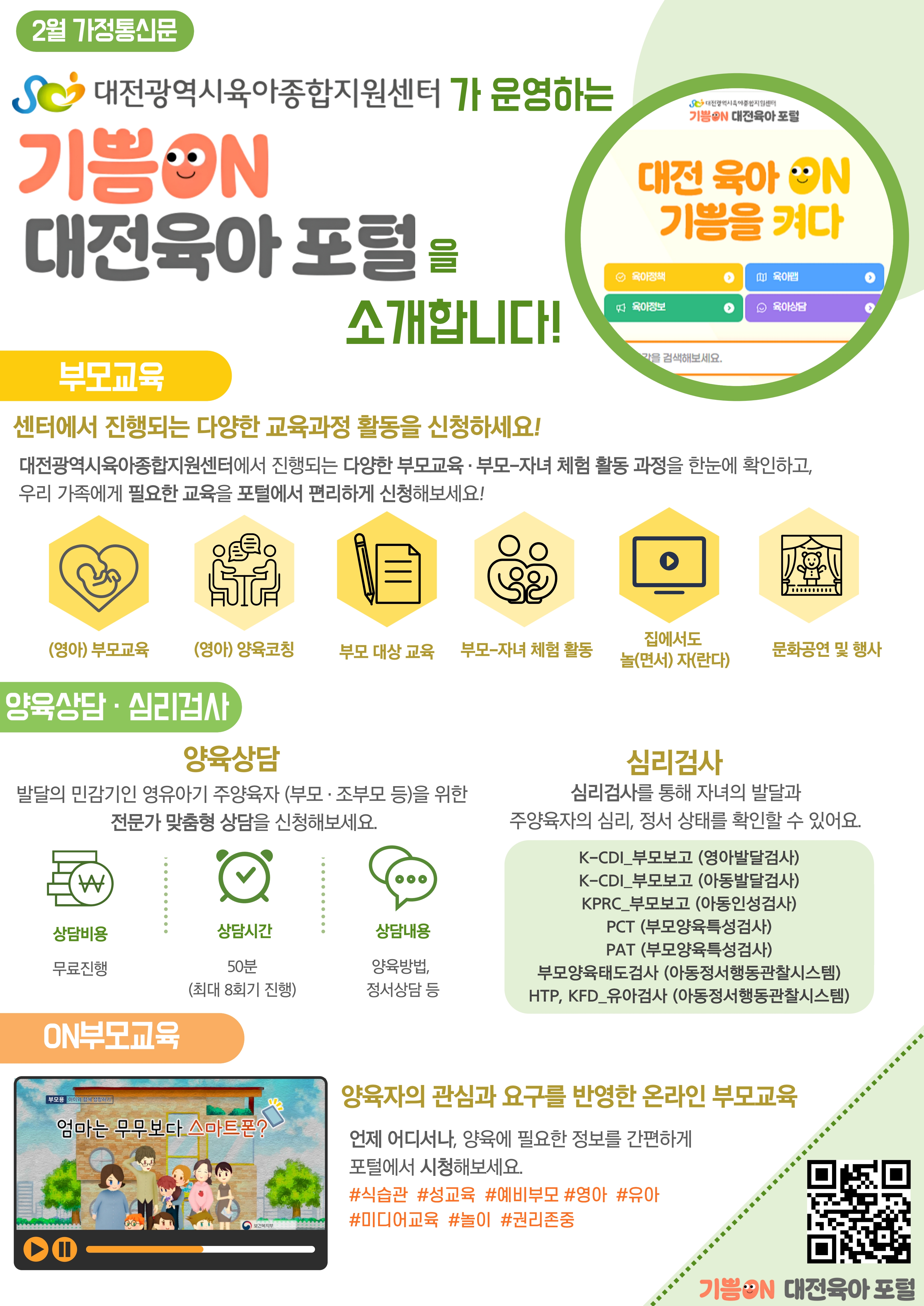 2026년 2월 가정통신문 - 기쁨ON 대전육아 포털을 소개합니다!.hwp