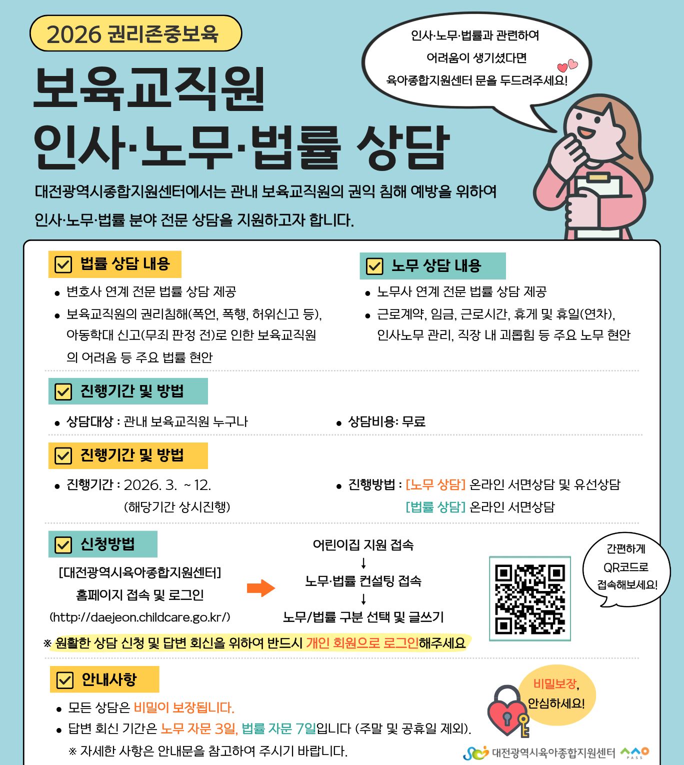 「보육교직원 인사·노무·법률 상담」을 운영하고자 합니다.