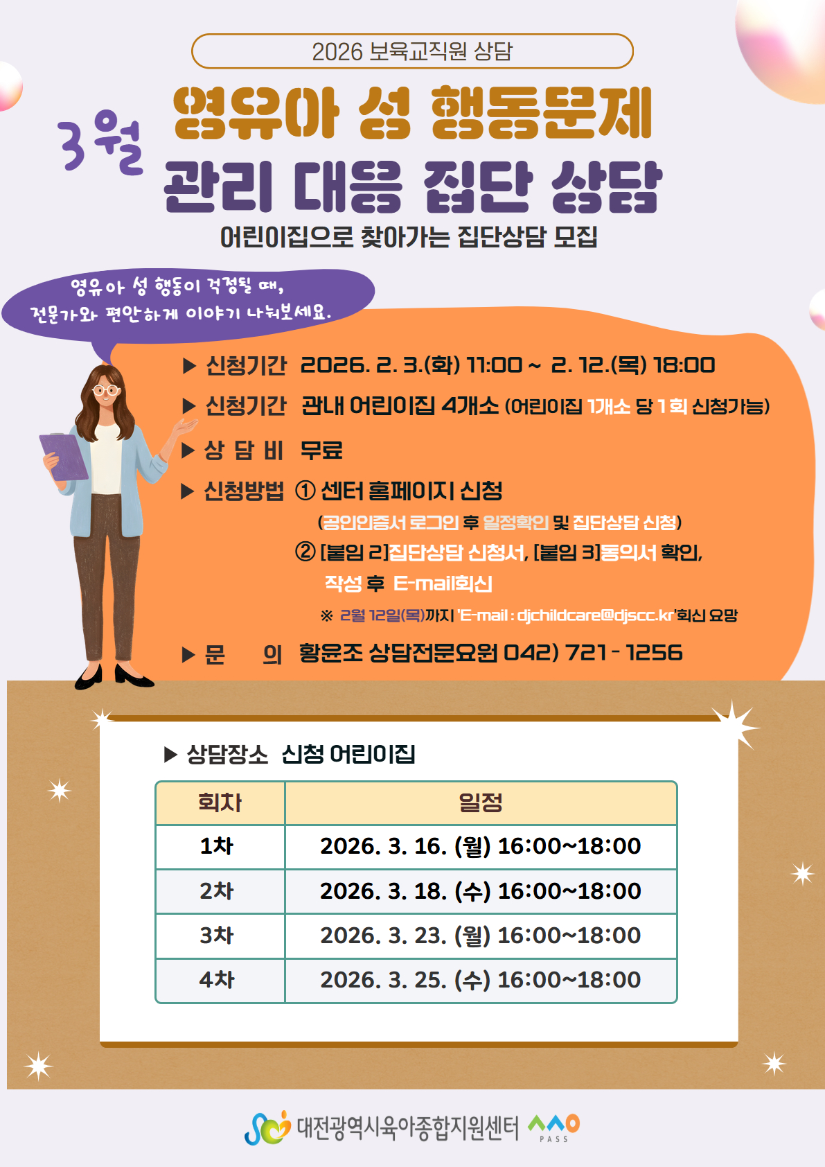 | 제목 | 2026 영유아 성 행동문제 관리 대응 집단상담 1회차(3.16.월.) | ||